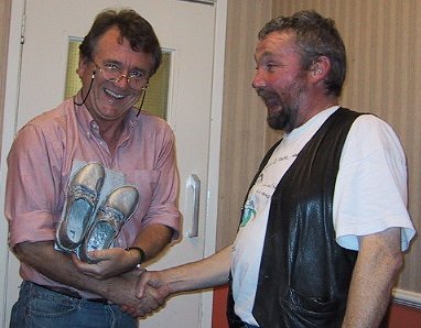 Geoff Bibby, probably the best dancer in the side, accepts the award for spectacular fall at Lymm Dam