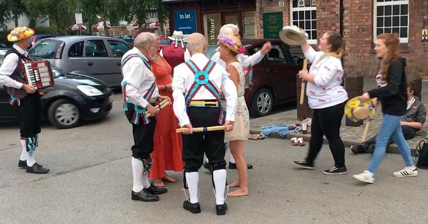 Rob talks the victims (L-R: Jeanette, Megan, Elisha, Wendy) through the dance (Bean Setting)