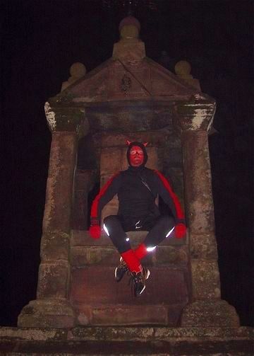 Beelzebub surveys Lymm from the summit of Lymm Cross